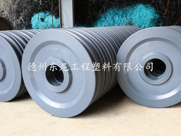 MC尼龍是一種高輕度的澆鑄尼龍,內(nèi)含二硫化鉬(Mos2)超微粉末提高其潤滑性。其非凡的強(qiáng)度支承軸承的負(fù)荷大大高于其他工程熱塑塑膠。由于它的內(nèi)在彈性,非極性和極快的工作應(yīng)力釋放能力,不會產(chǎn)生永久的變形。MC尼龍耐磨,不但減少設(shè)備的總重,而且保護(hù)相配合的金屬表面。隨著移動式起重機(jī)和升降機(jī)設(shè)備應(yīng)用的增多,為了提高能力和移動性能,在新式設(shè)計中要求起重臂金屬滑輪和配重必須減重。而且,海洋勘測作業(yè)隊(duì)起重設(shè)備的防腐蝕零件的要求也逐步加強(qiáng)。多年來,重型起重設(shè)備的制造商和使用者一直在尋找新方法來提高鋼纜的使用壽命,減少在安裝滑輪上的磨損,早起方案包括在金腿滑輪涂敷彈性材料和在金屬輪轂上安裝這類材料的輪緣。