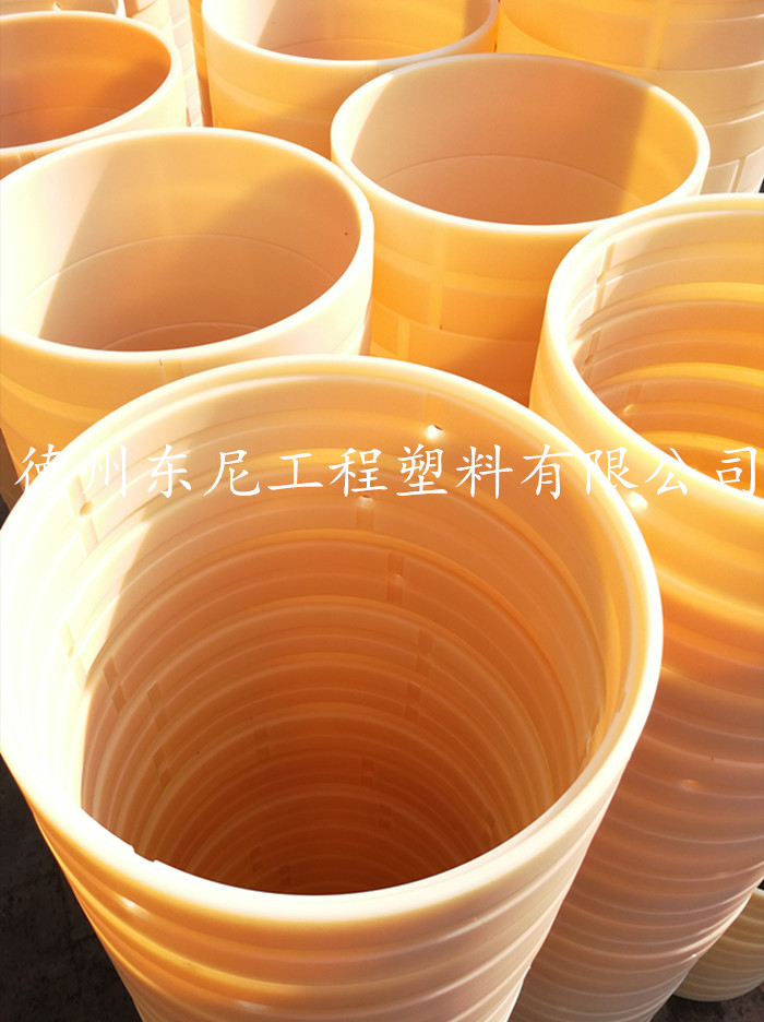 公司產(chǎn)品主要有:各種規(guī)格的尼龍軸套,滑輪,滑塊,托輥,柱銷,傳動齒輪,密封墊圈,襯板,管材,棒材,板材以及異型件;橡膠機械尼龍?zhí)?,擋膠板(長期備有6寸,9寸,10寸,12寸,14寸,16寸,18寸,22寸,26寸及特殊加工產(chǎn)品)。圓壓園,圓壓平模切機尼龍?zhí)祝湍猃?,稀土含油尼龍,大型澆注MC尼龍。各種材質(zhì)(PA.PP.PE.ABS.POM.FTPE)注塑件;各種規(guī)格的超高分子量聚乙烯(UHMW-PE)板材.導軌.鏈條.托條.軸套及異型件等等;先進的靜態(tài)澆鑄,離心澆注以及大型模壓等生產(chǎn)設(shè)備和多臺數(shù)控車床,數(shù)控銑床,普通車床,鋸床等機械加工設(shè)備,可直接為客戶加工成品件.